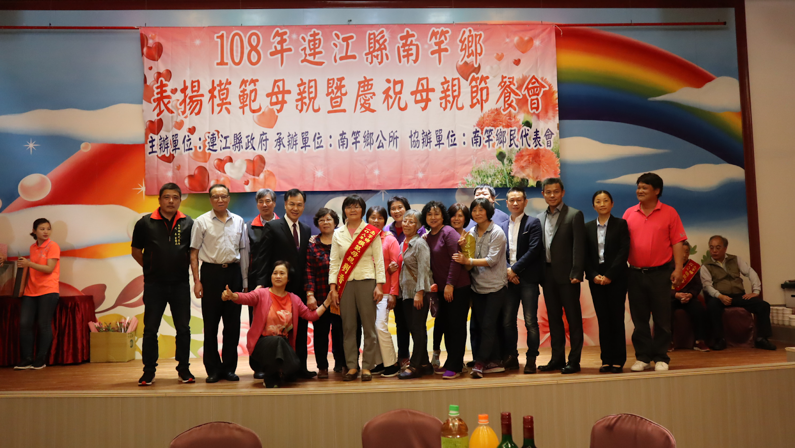 慶祝108年母親節,連江縣南竿鄉公所於今(12)日 中午於神辳居婚宴會館及狀元樓餐廳,席開72桌,舉辦南竿鄉模範母親表揚暨慶祝餐會,活動由鄉長陳振國主持,縣長劉增應親自表揚今年南竿鄉2位模範母親陳淑貞及劉香蓮 女士,表彰她們對家庭及子女無私的奉獻。
